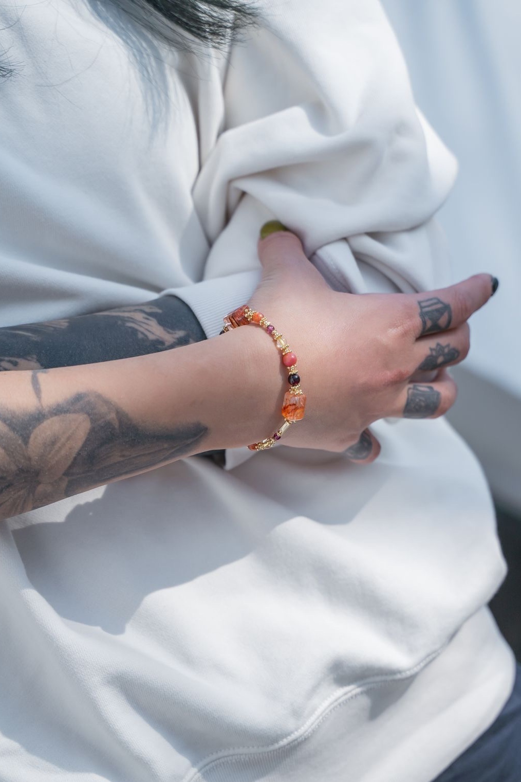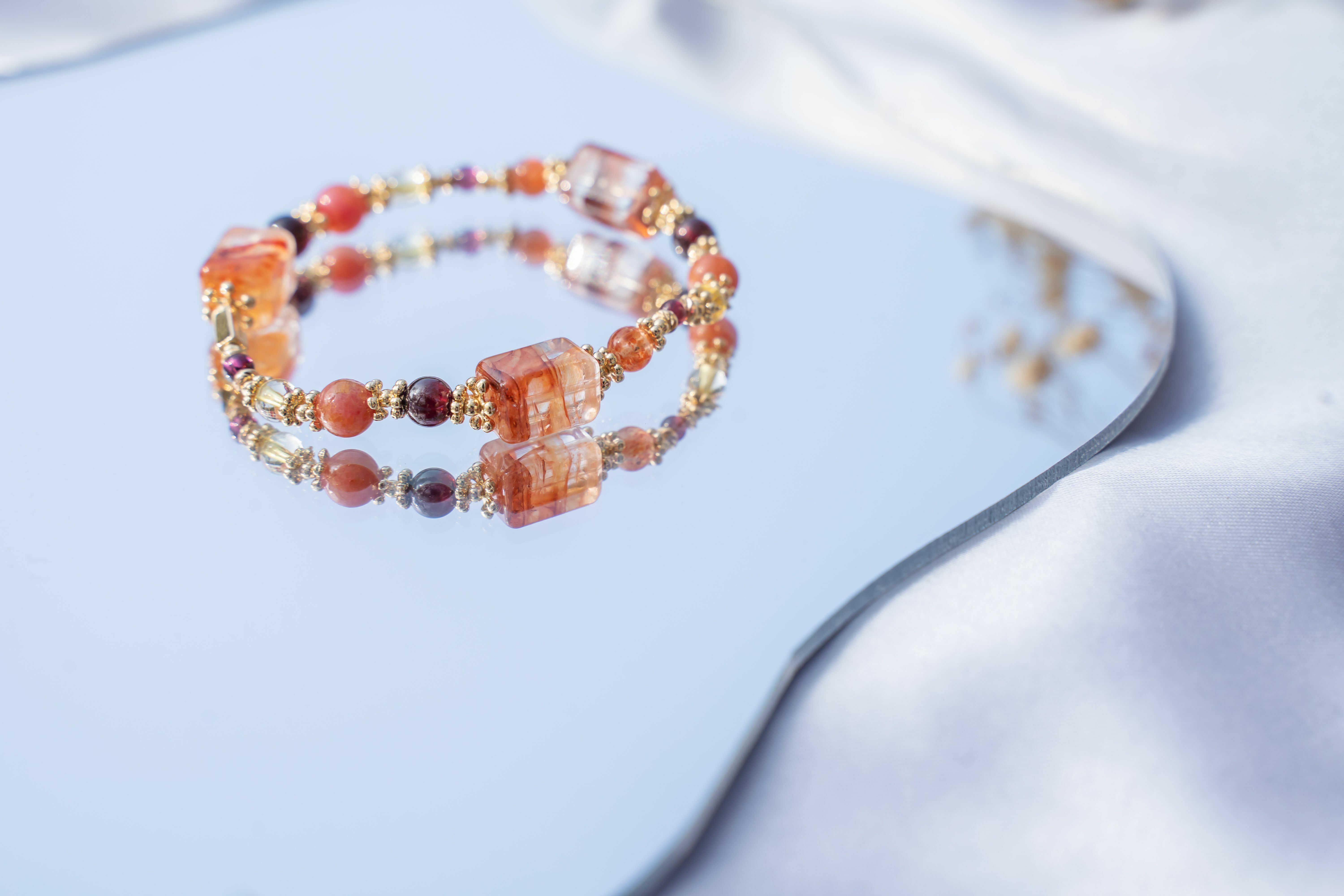 ・全水晶款使用彈力繩,製作時會綁比較緊,戴久了或拉扯次數多會有些鬆份。